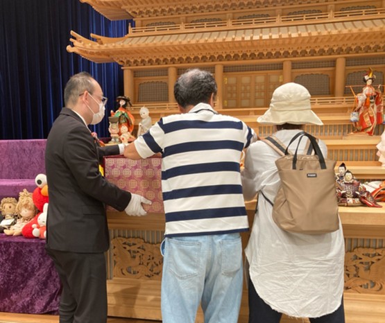 来館されたお客様には、スタッフが丁寧に対応し、人形をご自身の手で祭壇に飾っていただきます。